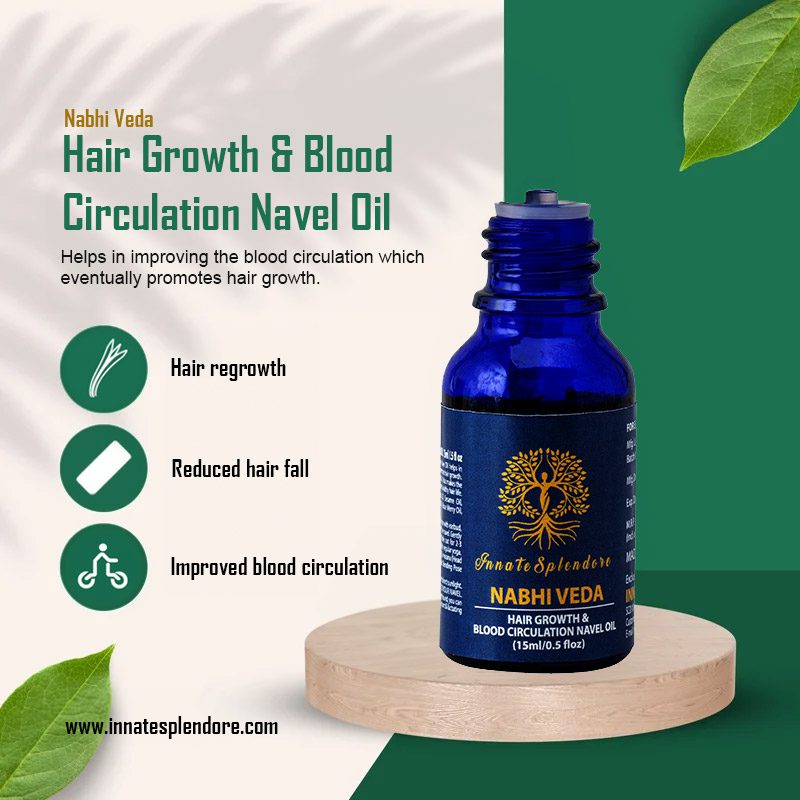 Nabhi Veda’s Hair Growth & Blood Circulation navel oil helps in the reduction of hair fall. Helps in improving blood circulation which eventually promotes hair growth. It help strengthen the hair follicle reducing hair fall. It also makes the hair shiny and adds more volume to the hair. It promotes a healthy hair life. It will regrow your hair within 4 weeks instead of 3 months.